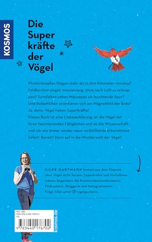 Wer dieses Buch liest, wird Amsel, Spatz & Co. garantiert mit anderen Augen sehen! Denn Vögel sind wahre Wunderwesen, deren Superkräfte bisher viel zu oft übersehen wurden. Grund genug also, die Fähigkeiten der Luftakrobaten und Sangeskünstler einmal genauer unter die Lupe zu nehmen »Die Vogelguckerin« Silke Hartmann tut das in diesem Buch und hat dafür mit Vogelforscherinnen und -Expertinnen über die erstaunlichen Fähigkeiten unserer Vögel gesprochen. Gleichzeitig löst sie das Klischee vom alten, männlichen Ornithologen auf und zeigt: Vogelkunde geht auch jung, modern und weiblich! Vom Fliegen übers Singen bis hin zum Schmecken und zur Intelligenz – die Superkräfte der Vögel sind beeindruckend und werden den Leserinnen und Lesern mit Sicherheit ein staunendes „Wow!“ entlocken.