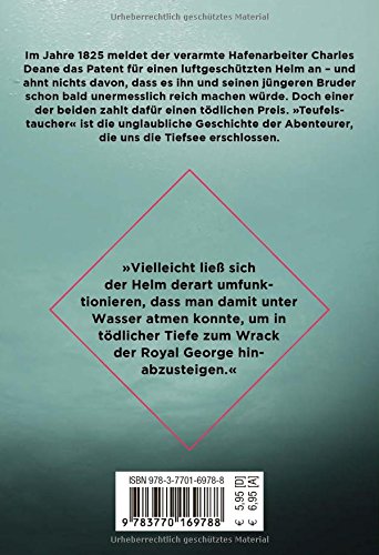 Im Jahre 1825 meldet der verarmte Hafenarbeiter Charles Deane das Patent für einen luftgeschützten Helm an - und ahnt nichts davon, das es ihn und seinen jüngeren Bruder schon bald unermesslich reich machen würde. Doch einer der beiden zahlt dafür einen tödlichen Preis. "Teufelstaucher" ist die unglaubliche Geschichte der Abenteurer, die uns die Tiefsee erschlossen.Die unbekannte Geschichte der Pioniere des Tiefsee-Tauchens.