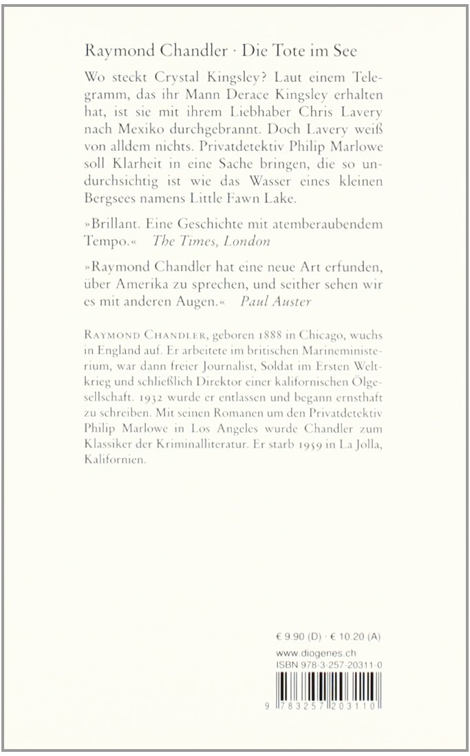 Raymond Chandler (1888-1959) begann seine Schriftstellerlaufbahn 1908 in London als "Dichter", entschloß sich dann aber, lieber ein guter Krimi- und Drehbuchautor in Hollywood als ein mittelmäßiger Poet zu werden. In seinen "detective stories" und Kriminalromanen setzte Chandler durch sein hochentwickeltes Formbewußtsein und das beständige Feilen an Stil, Dialog und Charakterzeichnung Maßstäbe. So formte sich bei ihm, in seiner sarkastisch-pointierten Schreibweise, der Krimiplot zu einem kritischen Gesellschaftsbild Amerikas in den 30er Jahren.