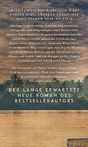 Kerala, um 1900: Die junge Mariamma verlässt ihr Zuhause, um bei ihrem neuen Mann in Parambil zu leben, inmitten von Flüssen und Kanälen, Palmen und Jackfruchtbäumen. Sie vermisst ihre Mutter, und ihr Mann scheint sich kaum für sie zu interessieren. Doch bald findet sie in ihrem fünfjährigen Stiefsohn Jojo einen Gefährten, der nicht von ihrer Seite weicht. Als er, der stets das Wasser gescheut hat, bei einem Unfall ertrinkt, kommt sie einem Geheimnis ihrer neuen Familie auf die Spur: Seit Generationen gibt es immer wieder Familienmitglieder, die unerklärliche Angst vor dem Wasser haben; viele von ihnen sind ertrunken. Doch was dahintersteckt, bleibt ein Rätsel. In den folgenden Jahrzehnten wächst Mariammas Familie und sie wird zur glücklichen Mutter, Grossmutter und Matriarchin »Big Ammacchi«. Und auch der Fortschritt hält Einzug in Parambil. Während in der Welt Kriege toben und Indien der Befreiung zustrebt, werden in Parambil Strassen und Schulen gebaut, die Häuser mit Elektrizität versorgt und die Menschen endlich medizinisch betreut– und schliesslich kann auch das Rätsel um den »Fluch des Wassers« aufgeklärt werden. Abraham Verghese schlägt in seinem lang erwarteten, bewegenden und bildgewaltigen neuen Roman einen epischen Bogen durch fast ein ganzes Jahrhundert indischer Geschichte. Er erzählt anhand des Schicksals einer Familie vom Sieg des Wissens und der modernen Medizin, von der Überwindung von Klassen und Kasten – und von den ganz grossen Dingen: von Liebe und Tod, Schuld und Erlösung.