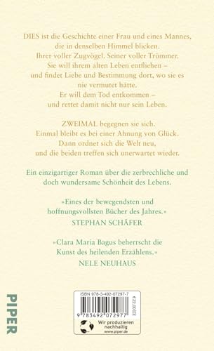 Dies ist die Geschichte einer Frau und eines Mannes. Die in denselben Himmel blicken. Ihrer voller Zugvögel. Seiner voller Trümmer. Sie will ihrem alten Leben entfliehen – und findet Liebe und Bestimmung dort, wo sie es nie vermutet hätte. Er will dem Tod entkommen – und rettet damit nicht nur sein Leben. Zweimal begegnen sie sich. Einmal bleibt es bei einer Ahnung von Glück. Dann ordnet sich die Welt neu, und die beiden treffen sich unerwartet wieder.