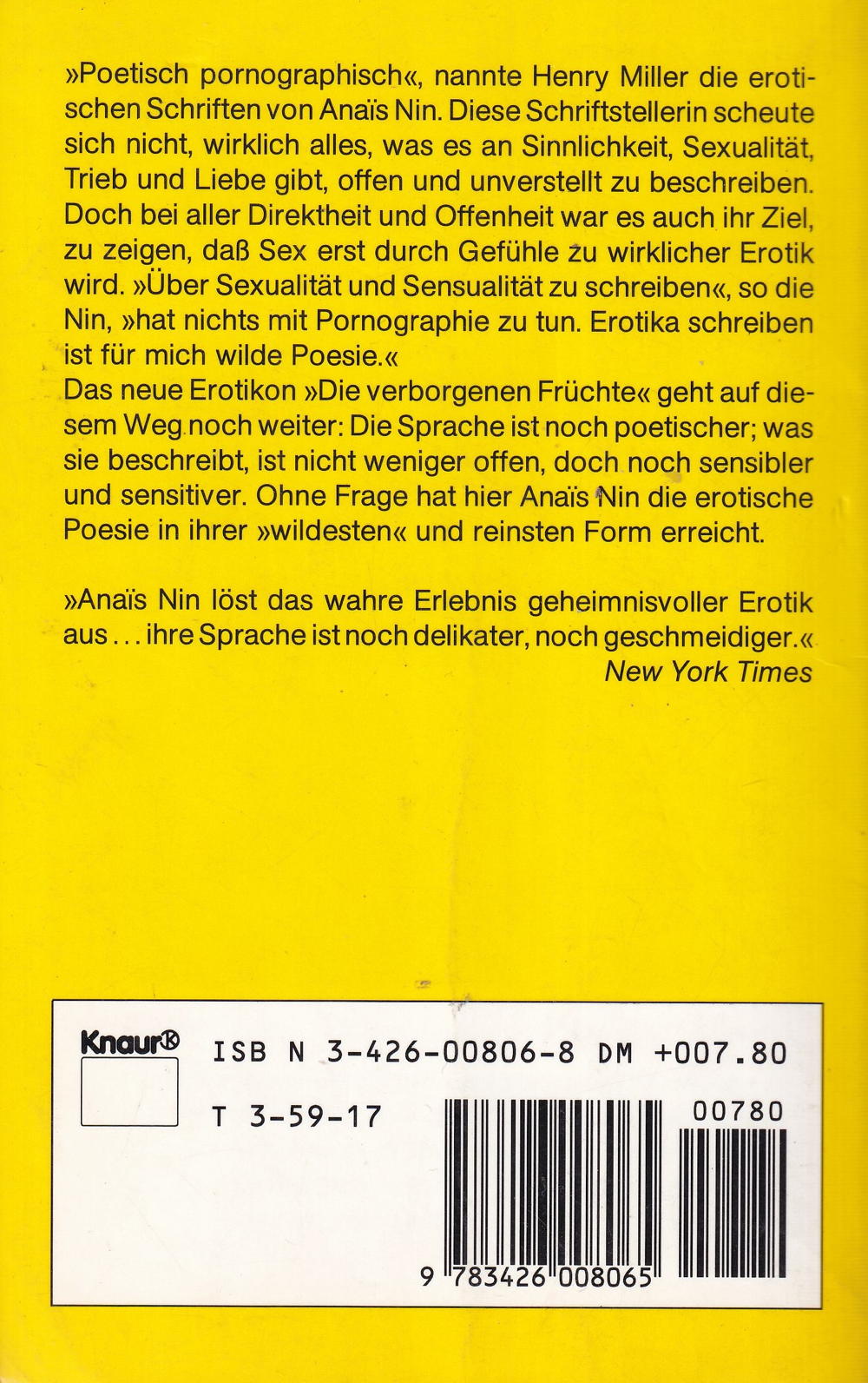 »Anaïs Nin löst das wahre Erlebnis geheimnisvoller Erotik aus... Ihre Sprache ist noch delikater, noch geschmeidiger. «