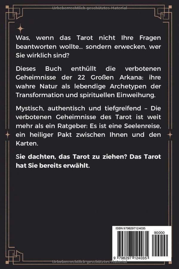 Was Sie entdecken werden: Die verborgenen Wahrheiten hinter jeder Karte (auch jene, die stören) Warum Ihre Legungen scheitern (und wie Sie sie erwecken) Die verbotenen Kombinationen und ihre vibrationelle Lesung Das Aktivierungsritual Ihres Spiels als lebendiges Werkzeug Die lebendige Legung, die multidimensionalen Lesungen, die Portale der Seele Und vor allem… wie Sie das Tarot tragen, anstatt es zu lesen Für wen ist dieses Buch? Für jene, die spüren, dass etwas anderes hinter den Symbolen liegt Für die Überbringerinnen, modernen Hexen, Therapeutinnen der Seele Für jene, die nicht mehr vorhersagen… sondern transformieren wollen Dieses Buch ist ein Pakt. Jedes Kapitel aktiviert, erschüttert, heilt. Es liest sich nicht. Es wird gelebt. Und wenn Sie bereit sind zu hören, was das Tarot flüstert, wenn es schweigt…, dann ist dieses Buch für Sie.