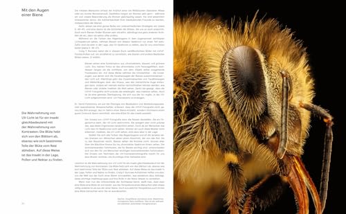 Fast ein Jahrzehnt hat Fotograf Craig P. Burrows damit verbracht, die Flora im ultravioletten Spektrum fotografisch zu dokumentieren. Das Bienenbuch enthält zudem Begleittexte und Interviews mit über 40 der weltweit führenden Bienenexperten, die die Rolle der Biene im komplexen Ökosystem der Erde beleuchten und ihre entscheidende Bedeutung für die Zukunft allen Lebens auf der Erde. Ausserdem bekommen wir Einblick in die Geschichte der menschlichen Beziehung zu den Bienen und die Vorteile ihrer Produkte für die menschliche Gesundheit und unser Wohlbefinden. Die wissenschaftlich neuesten Daten der Bienenforschung werden von anschaulichen Illustrationen und Infografiken begleitet. Der renommierte deutsche Bienenforscher Prof. Jürgen Tautz hat das Vorwort geschrieben. Die einzigartige Fotografie und die aktuellen wissenschaftlichen Erkenntnisse zur Honigbiene machen dieses Buch zu einem besonderen Naturbildband, der einen neuen Blick auf die Welt der Biene eröffnet und uns die Beziehung zwischen Biene und uns Menschen neu verstehen lässt.