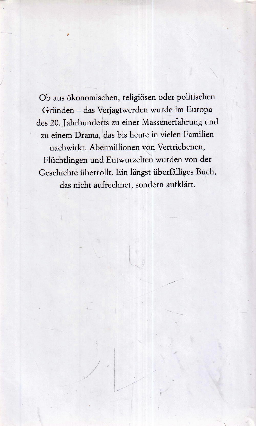 Ob aus ökonomischen, religiösen oder politischen Gründen das Verjagtwerden wurde im Europa des 20. Jahrhunderts zu einer Massenerfahrung und zu einem Drama, das bis heute in vielen Familien nachwirkt. Abermillionen von Vertriebenen, Flüchtlingen und Entwurzelten wurden im Europa des 20. Jahrhunderts von der Geschichte überrollt. Ein längst überfälliges Buch, das nicht aufrechnet, sondern aufklärt.