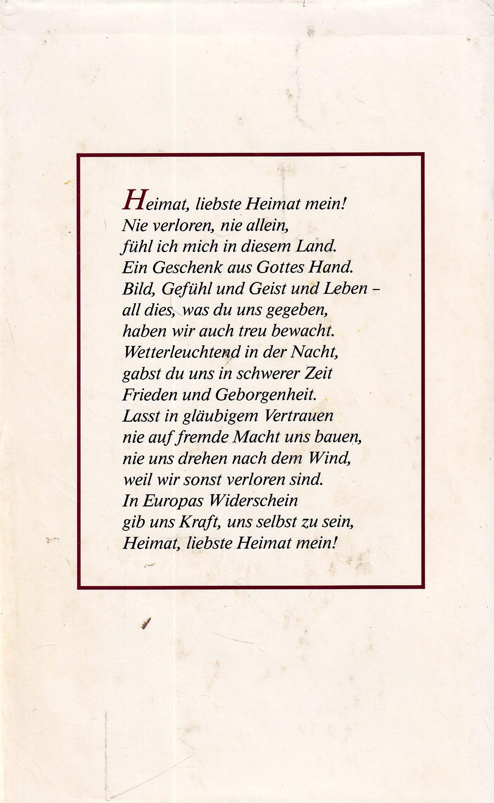 In Europas Widerschein gib uns Kraft, uns selbst zu sein, Heimat, liebste Heimat mein!