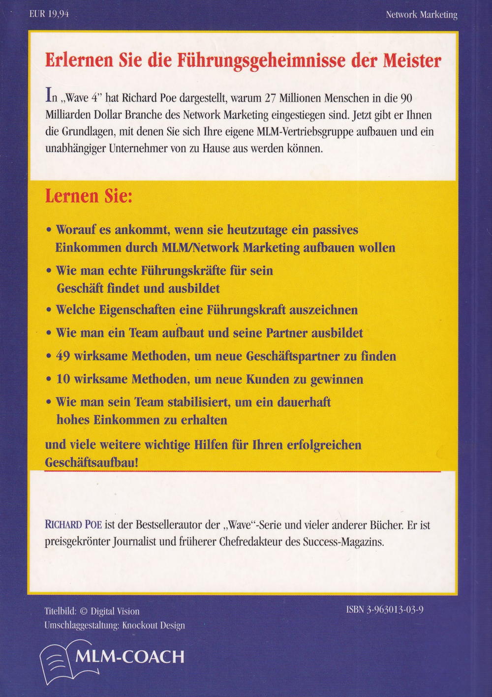 In „Wave 4" hat Richard Poe dargestellt, warum 27 Millionen Menschen in die 90 Milliarden Dollar Branche des Network Marketing eingestiegen sind. Jetzt gibt er Ihnen die Grundlagen, mit denen Sie sich Ihre eigene MLM-Vertriebsgruppe aufbauen und ein unabhängiger Unternehmer von zu Hause aus werden können.