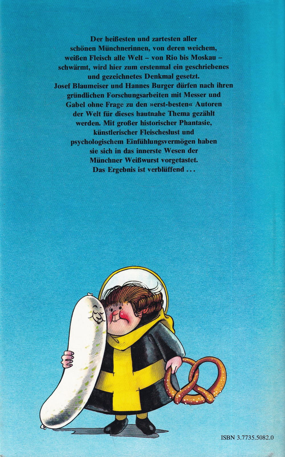 Josef Blaumeiser und Hannes Burger düirfen nach ihren gründlichen Forschungsarbeiten mit Messer und Gabel ohne Frage zu den »erst-besten« Autoren der Welt für dieses hautnahe Thema gezählt werden. Mit grosser historischer Phantasie, künstlerischer Fleischeslust und psychologischem Einfühlungsvermögen haben sie sich in das innerste Wesen der Münchner Weisswurst vorgetastet.