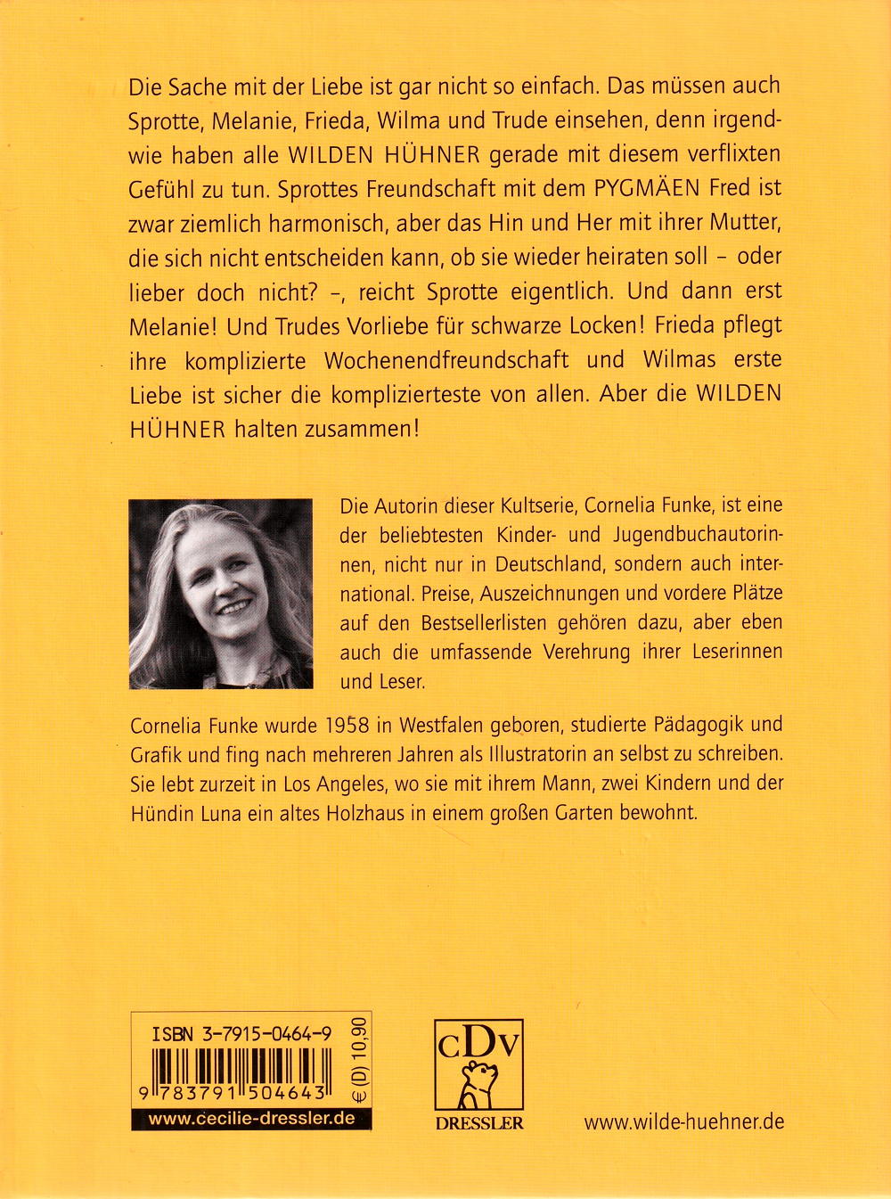 Die Sache mit der Liebe ist gar nicht so einfach. Das müssen auch Sprotte, Melanie, Frieda, Wilma und Trude einsehen, denn irgendwie haben alle WILDEN HÜHNER gerade mit diesem verflixten Gefühl zu tun. Sprottes Freundschaft mit dem PYGMÄEN Fred ist zwar ziemlich harmonisch, aber das Hin und Her mit ihrer Mutter, die sich nicht entscheiden kann, ob sie wieder heiraten soll - oder lieber doch nicht? -, reicht Sprotte eigentlich. Und dann erst Melanie! Und Trudes Vorliebe für schwarze Locken! Frieda pflegt ihre komplizierte Wochenendfreundschaft und Wilmas erste Liebe ist sicher die komplizierteste von allen. Aber die WILDEN HÜHNER halten zusammen!