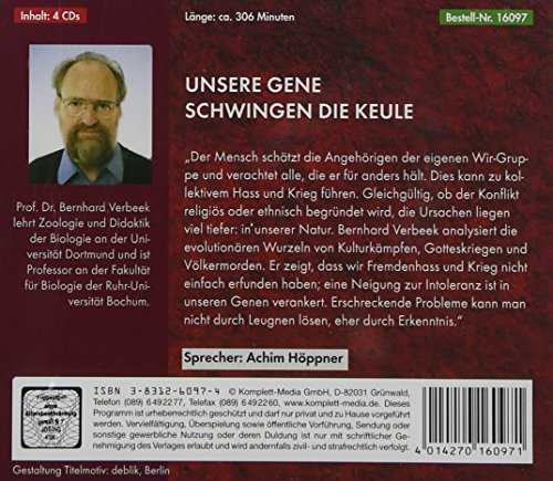 „Der Mensch schätzt die Angehörigen der eigenen Wir-Gruppe und verachtet alle, die er für anders hält. Dies kann zu kollektivem Hass und Krieg führen. Gleichgültig, ob der Konflikt religiös oder ethnisch begründet wird, die Ursachen liegen viel tiefer: in'unserer Natur. Bernhard Verbeek analysiert die evolutionāren Wurzeln von Kulturkämpfen, Gotteskriegen und Völkermorden. Er zeigt, dass wir Fremdenhass und Krieg nicht einfach erfunden haben; eine Neigung zur Intoleranz ist in unseren Genen verankert. Erschreckende Probleme kann man nicht durch Leugnen lösen, eher durch Erkenntnis. "
