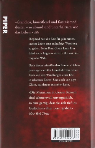Nach ihrem grossartigen Roman »Liebespaarungen« erzählt Lionel Shrivers neues Buch von den Wandlungen einer Ehe in schweren Zeiten. Und von dem Glück, das daraus entstehen kann. Klug, schonungslos, unendlich zärtlich. Nachdenken, miteinander reden, die Welt sehen und einfach nur da sein. Das hat sich Shep für den Rest seines Lebens vorgenommen. Nach so vielen Jahren will er endlich seinen Job und die Staus auf dem Brooklyn-Queens-Expressway, all den Ärger des Alltags hinter sich lassen. Die knappe Million Dollar aus dem Verkauf seiner Firma soll diesen Traum Wirklichkeit werden lassen. Doch da teilt ihm seine Frau Glynis eine bestürzende Nachricht mit – sie ist schwer krank, und Shep wird vermutlich all sein Geld brauchen, um sie nicht für immer zu verlieren. – Mit Präzision und Anteilnahme beschreibt Lionel Shriver den tiefgreifenden Wandel einer Ehe, in der eine lebensbedrohliche Krankheit auch eine Chance für neue Zärtlichkeit, Nähe und sogar funkelnden Humor bietet. Ein literarischer Pageturner, dessen Kern nicht zuletzt die tragische Frage ist: Wie viel ist uns ein Menschenleben wert?