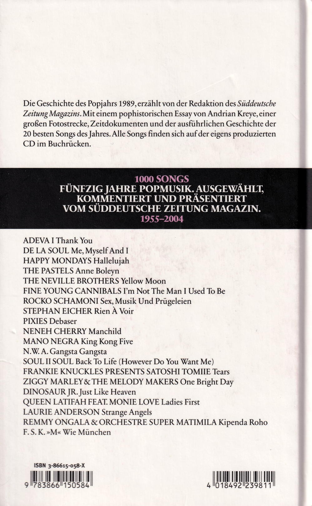 Die Geschichte des Popjahrs 1989, erzählt von der Redaktion des Süddeutsche Zeitung Magazins. Mit einem pophistorischen Essay von Andrian Kreye, einer grossen Fotostrecke, Zeitdokumenten und der ausführlichen Geschichte der 20 besten Songs des Jahres. Alle Songs finden sich auf der eigens produzierten CD im Buchrücken.
