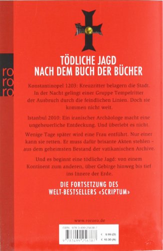 Tödliche Jagd nach dem Buch der Bücher. Konstantinopel 1203: Kreuzritter belagern die Stadt. In der Nacht gelingt einer Gruppe Tempelritter der Ausbruch durch die feindlichen Linien. Doch sie kommen nicht weit. Istanbul 2010: Ein iranischer Archäologe macht eine ungeheuerliche Entdeckung. Und überlebt es nicht. Wenige Tage später wird eine Frau entführt. Nur einer kann sie retten. Er muss dafür brisante Akten stehlen – aus dem geheimsten Bestand der vatikanischen Archive. Und es beginnt eine tödliche Jagd: von einem Kontinent zum anderen, über Gebirge hinweg bis tief ins Innere der Erde. DIE FORTSETZUNG DES WELT-BESTSELLERS «SCRIPTUM»