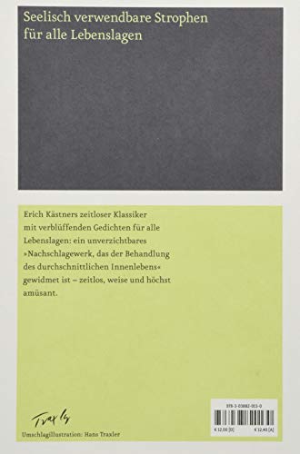Ein unverwüstlicher Klassiker und ein unverzichtbares »Nachschlagewerk, das der Behandlung des durchschnittlichen Innenlebens« gewidmet ist – zeitlos, weise und höchst amüsant. »Was soll einer einnehmen, den die trostlose Einsamkeit des möblierten Zimmers quält oder die nasskalten, nebelgrauen Herbstabende? Zu welchen Rezepten soll der greifen, den der Würgeengel der Eifersucht gepackt hat? Womit soll ein Lebensüberdrüssiger gurgeln?« Die Antwort auf diese von ihm selbst gestellten Fragen liefert Kästner mit diesem Buch, einer unverzichtbaren Sammlung »seelisch verwendbarer Strophen«, die Trost und Hilfe in allen Lebenslagen garantieren.