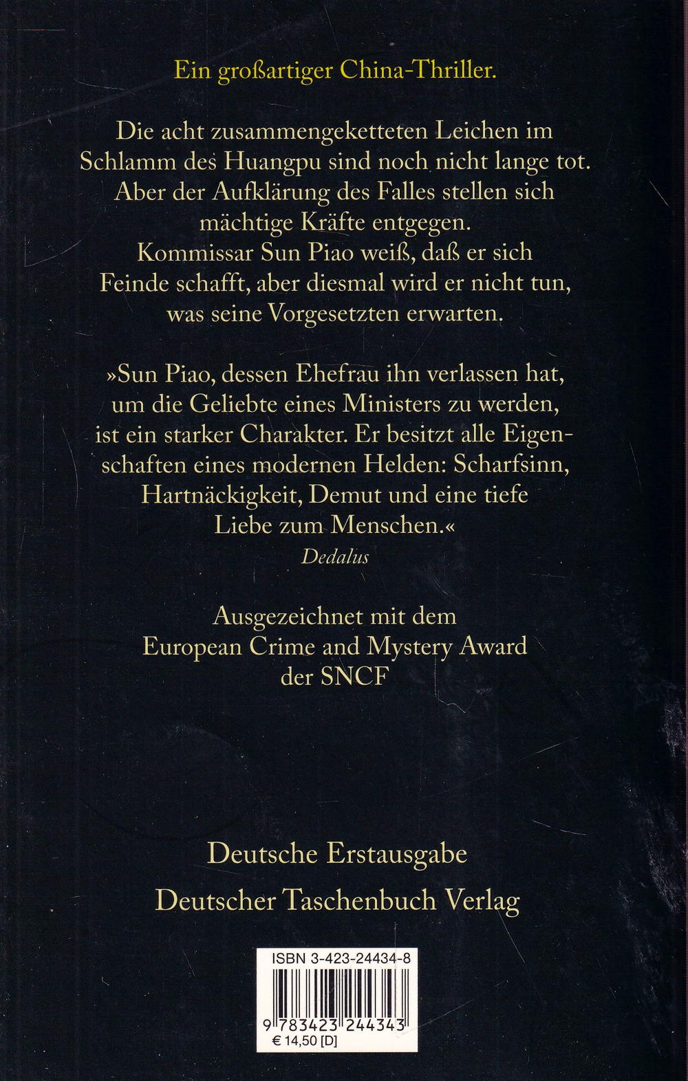 Shanghai. Die acht zusammengeketteten Leichen - sieben Männer und eine Frau - im Schlamm des Huangpo sind noch nicht lange tot. Aber jetzt will niemand mehr etwas von ihnen wissen. Selbst der Polizeipathologe weigert sich, sie untersuchen zu lassen. Kommissar Sun Piao vom PSB muss einen Bekannten um Hilfe bitten, um sie sezieren zu lassen. Eine Autopsie, die der junge Arzt nicht überlebt, denn es gibt Kräfte, die eine Aufklärung des Falles um jeden Preis zu verhindern versuchen. Kommissar Piao weiss, dass er die Ermittlungen schleunigst einstellen sollte, aber er hat schon zu oft nachgegeben - und dann ist da noch diese schöne Amerikanerin, die nach ihrem spurlos verschwundenen Sohn sucht. Diesmal wird Sun Piao nicht tun, was seine Vorgesetzten von ihm verlangen.