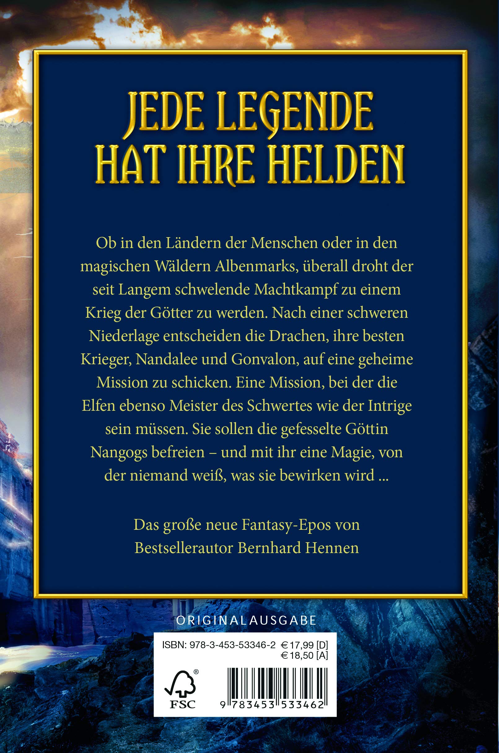 Nandalee und Gonvalon, die Verwegensten unter den Drachenelfen, werden vor den Rat der mächtigen Himmelsschlangen gerufen, um nach dem Überfall auf die legendäre Blaue Halle Albenmarks einen ungeheuerlichen Racheakt vorzubereiten: Sie sollen die Menschen und ihre Götter an ihrer schwächsten Stelle, auf Nangog, treff en. Und so machen sie sich auf die gefährliche Reise, die gebannte Herrin dieser Welt, die gefesselte Göttin, zu befreien. Währenddessen versucht der Herrscher Aaron verzweifelt, dem Spiel aus Intrigen, Mord und Krieg an seinem Hof Diplomatie und Vernunft entgegenzusetzen. Aber wem wird in diesem Wettlauf um Macht der nächste, alles entscheidende Schachzug gelingen? Eines scheint klar es sind die Elfen und Menschen, von denen die Zukunft aller abhängt!