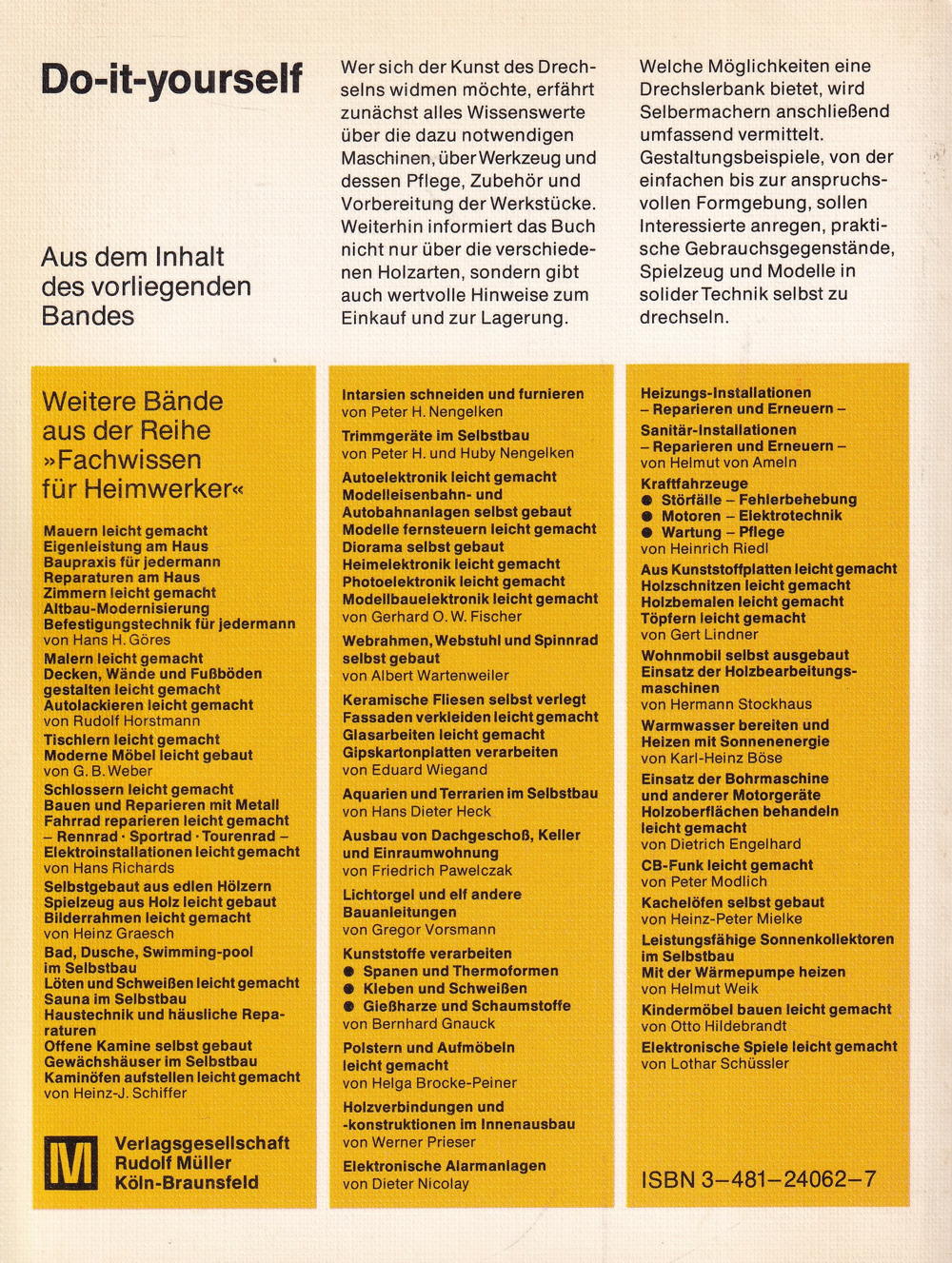 Wer sich der Kunst des Drechselns widmen möchte, erfährt zunächst alles Wissenswerte über die dazu notwendigen Maschinen, über Werkzeug und dessen Pflege, Zubehör und Vorbereitung der Werkstücke.