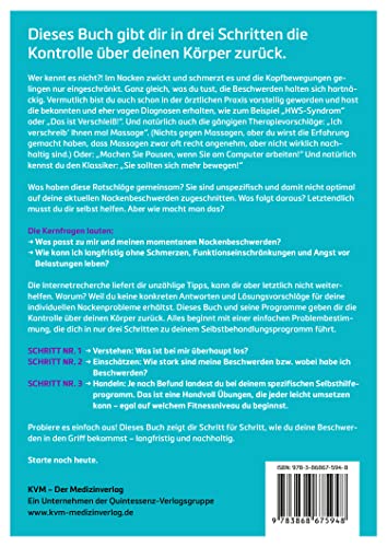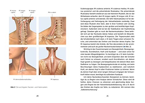 „Du bist dein eigener Therapeut“ bietet eine strukturierte und zielführende Anleitung, um den Teufelskreis von chronischen Beschwerden zu durchbrechen. Der Ratgeber räumt mit gängigen Mythen rund um Nackenbeschwerden auf, erklärt die Schmerzursachen auf verständliche Weise und lässt chronische Nackenschmerzen wieder handhabbar werden. Zwei Aspekte dieses Buches verdienen eine besondere Erwähnung: Die Übungsprogramme sind erstens so konzipiert, dass sie überall und mit wenig zeitlichem Auswand durchgeführt werden können, und zweitens wurde ihre Wirksamkeit klinisch getestet. Die Anwender können sich auf ihre positiven gesundheitlichen Effekte verlassen. Zusätzlich stehen Hilfsmaterialien wie Videosequenzen der Übungen via QR-Codes zur Verfügung. Die langjährige praktische Erfahrung der Autoren und deren Kenntnis des aktuellen Forschungsstands machen diese Lektüre zu einer wertvollen Anleitung für alle, die ohne Nackenbeschwerden ihren alltäglichen Pflichten und Vergnügungen nachgehen wollen.