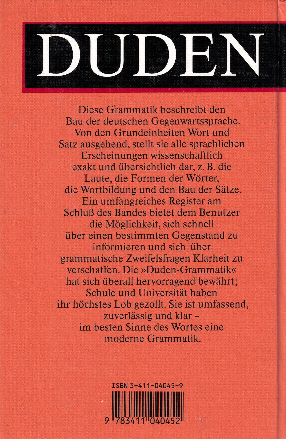 Ein umfangreiches Register am Schluss des Bandes bietet dem Benutzer die Möglichkeit, sich schnell über einen bestimmten Gegenstand zu informieren und sich über grammatische Zweifelsfragen Klarheit zu verschaffen. Die »Duden-Grammatik« hat sich überall hervorragend bewährt;