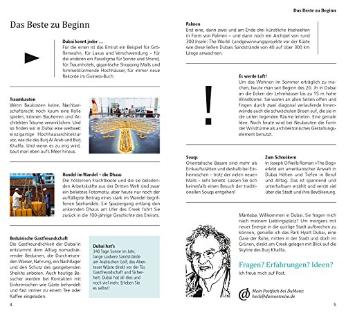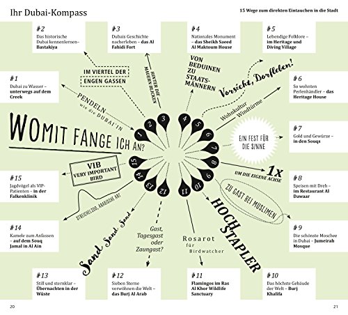 Mit den 15 »Direkt-Kapiteln« des Reiseführers von Gerhard Heck können Sie sich zwanglos unter die Dubai’in mischen, direkt in das Stadtleben eintauchen und die Highlights und Hotspots kennenlernen: alte Heritage Houses und spannende Museen, das Al Fahidi Fort und den Palast der Herrscherfamilie Al Maktoum, ein Drehrestaurant mit Panoramablick, eine Flamingo-Kolonie oder eine Falkenklinik. In eigenen Kapiteln erfahren Sie, wo es sich in fremden Betten gut schläft, wo Sie glücklich satt werden, wohin die Dubai’in zum Stöbern und Entdecken gehen und wohin es sie zieht, wenn die Nacht beginnt.