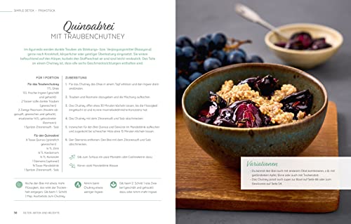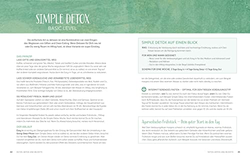 Mal ehrlich: Wer von uns leidet nicht unter Stress, Schlaf- und Bewegungsmangel sowie Ernährungsgewohnheiten, die uns nicht guttun? Das Ergebnis: Müdigkeit, Infektanfälligkeit, Haut-, Verdauungsprobleme und Co. Das muss nicht sein! Detoxen ist wie ein Grossputz für den Körper. Der Stoffwechsel kommt wieder ins Gleichgewicht, Zipperlein verschwinden, die Batterien werden aufgeladen und die Waage freut sich. Die Ayurveda-Expertinnen Dana Schwandt und Stephanie Schnicke zeigen, wie Detox zu Hause individuell und modern funktioniert. Man lernt die Hintergründe aus dem Ayurveda kennen und versteht, welcher Stoffwechseltyp man ist. Es werden verschiedene Detox-Varianten für jeden Typ und jedes Ziel vorgestellt. Als Einstieg genügt dem Stoffwechsel schon eine Woche, in der man gezielt auf bestimmte Dinge verzichtet und sich nach den ayurvedischen Prinzipien ernährt. Dafür gibt’s viele schnelle, leckere Rezepte. Und auch alte Detox-Hasen kommen mit etwas strengeren Varianten auf ihre Kosten. Plus: Anregungen zum „Detoxen“ für den Kopf, den Kalender und die Schublade.