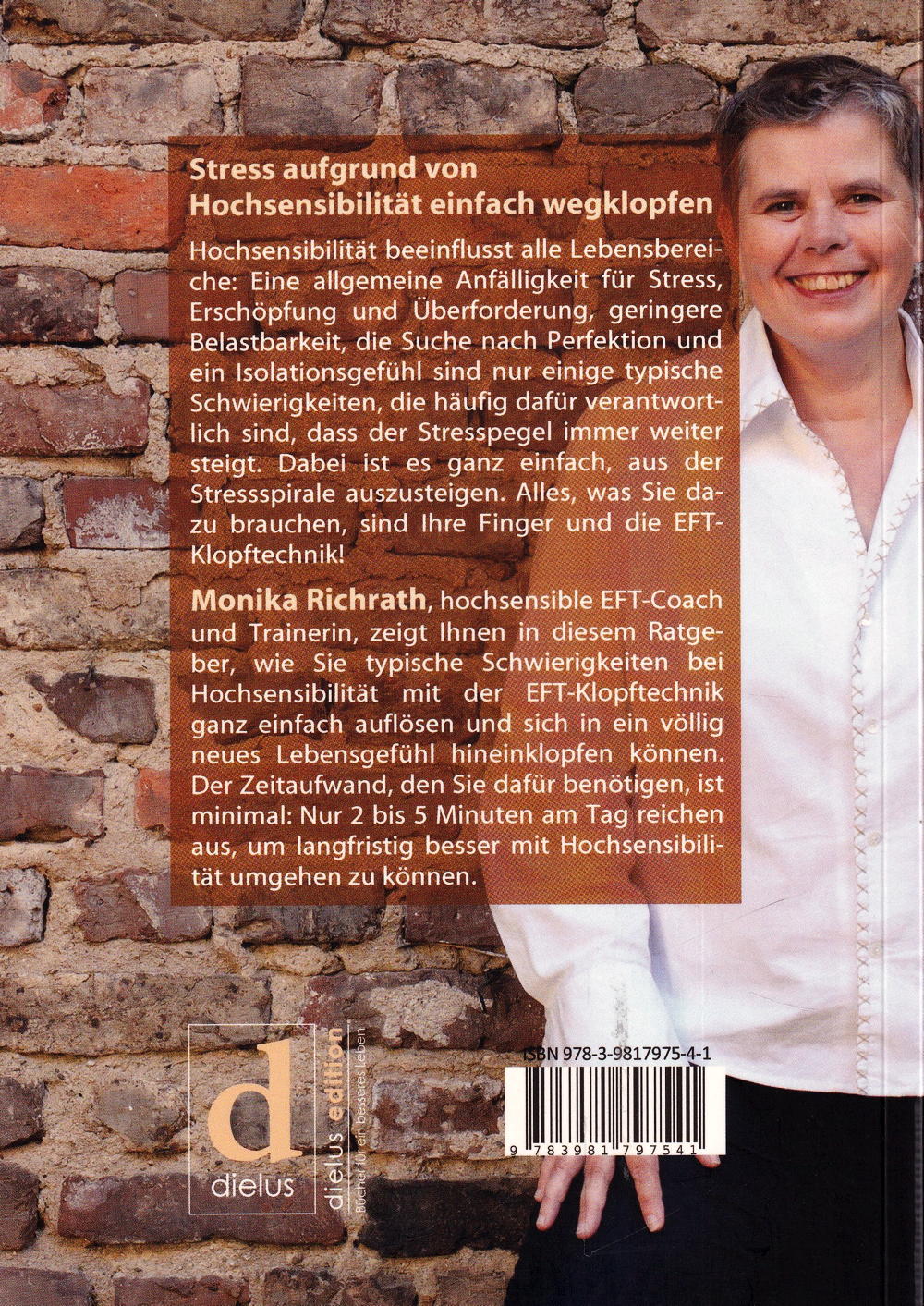 Monika Richrath, hochsensible EFT-Coach und Trainerin, zeigt Ihnen in diesem Ratgeber, wie Sie ganz typische hochsensible Schwierigkeiten mit der genialen EFT-Klopftechnik ganz einfach auflösen und Sie sich in ein völlig neues Lebensgefühl hineinklopfen können. Der Zeitaufwand, den Sie dafür benötigen ist minimal: Nur 2-5 Minuten am Tag reichen aus, um langfristig besser mit Hochsensibilität um gehen zu können.