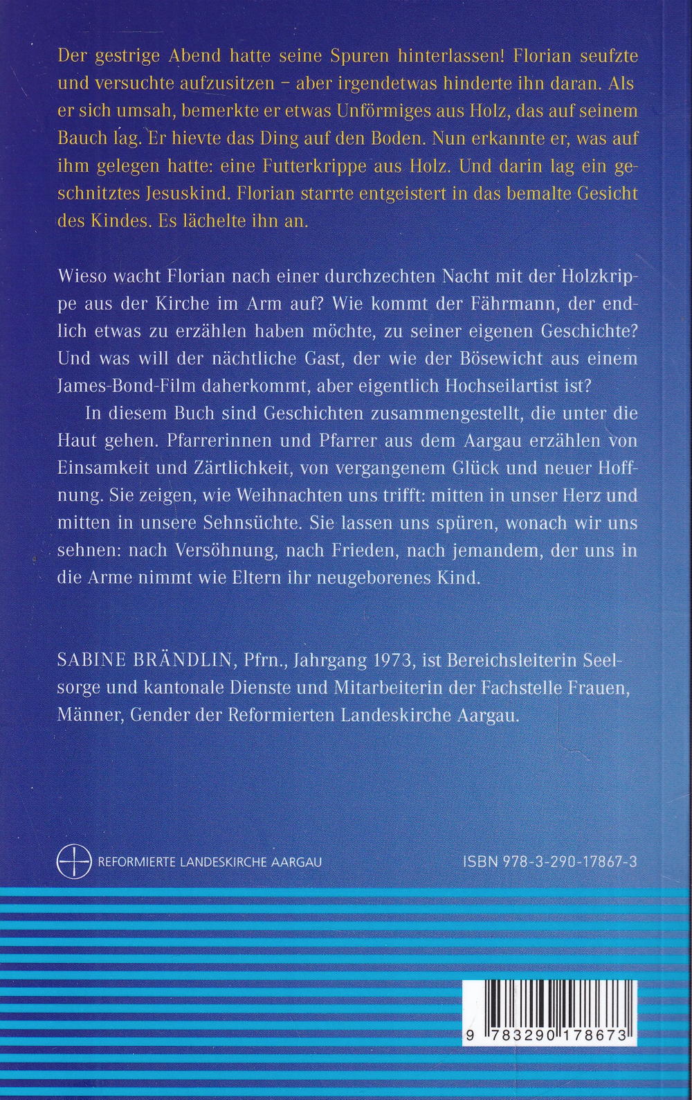 In diesem Buch sind Geschichten zusammengestellt, die unter die Haut gehen. Pfarrerinnen und Pfarrer aus dem Aargau erzählen von Einsamkeit und Zärtlichkeit, von vergangenem Glück und neuer Hoffnung. Sie zeigen, wie Weihnachten uns trifft: mitten in unser Herz und mitten in unsere Sehnsüchte. Sie lassen uns spüren, wonach wir uns sehnen: nach Versöhnung, nach Frieden, nach jemandem, der uns in die Arme nimmt wie Eltern ihr neugeborenes Kind.