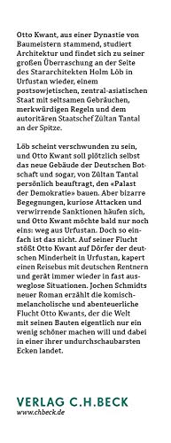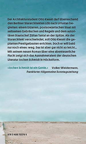 Löb scheint verschwunden zu sein, und Otto Kwant soll plötzlich selbst das neue Gebäude der Deutschen Botschaft und sogar, von Zültan Tantal persönlich beauftragt, den "Palast der Demokratie" bauen. Aber bizarre Begegnungen, kuriose Attacken und verwirrende Sanktionen häufen sich, und Otto Kwant möchte bald nur noch eins: weg aus Urfustan. Doch so einfach ist das nicht. Auf seiner Flucht stösst Otto Kwant auf Dörfer der deutschen Minderheit in Urfustan, kapert einen Reisebus mit deutschen Rentnern und gerät immer wieder in fast ausweglose Situationen. Jochen Schmidts neuer Roman erzählt die komisch-melancholische und abenteuerliche Flucht Otto Kwants, der die Welt mit seinen Bauten eigentlich nur ein wenig schöner machen will und dabei in einer ihrer undurchschaubarsten Ecken landet.