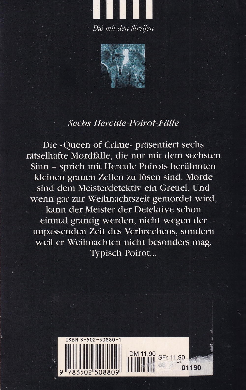 Die «Queen of Crime präsentiert sechs rätselhafte Mordfälle, die nur mit dem sechsten Sinn – sprich mit Hercule Poirots berühmten kleinen grauen Zellen zu lösen sind. Morde sind dem Meisterdetektiv ein Greuel. Und wenn gar zur Weihnachtszeit gemordet wird, kann der Meister der Detektive schon einmal grantig werden, nicht wegen der unpassenden Zeit des Verbrechens, sondern weil er Weihnachten nicht besonders mag. Typisch Poirot..