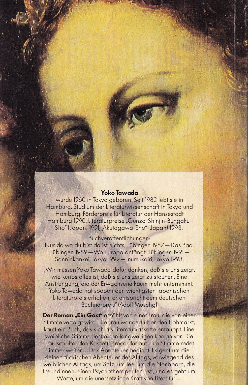Die Protagonistin des Romans, eine Japanerin, die für japanische Zeitschriften schreibt, kauft sich ein Buch, das sich als Kassette entpuppt. Darus entwickelt sich ein psychischer Abenteuerroman um eine Stimme … Der Nachbar, ein Psychologe, ein Student, Freundinnen der Hauptperson tauchen auf, verwickeln sich in diese aufregende Geschichte …
