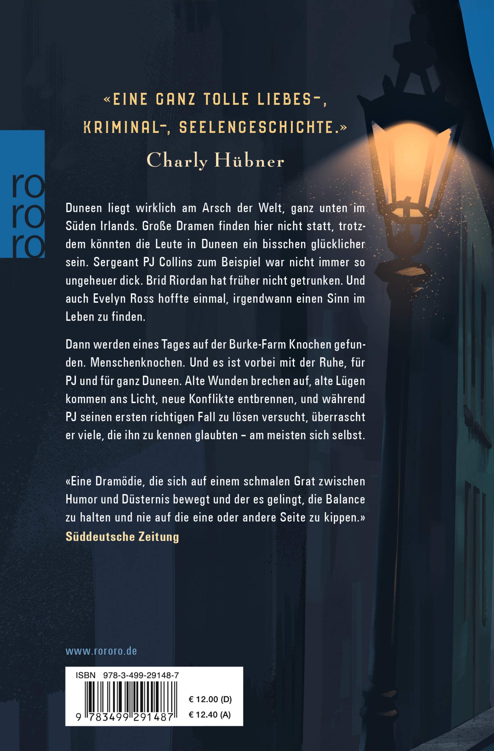 Die Nr. 1 aus Irland: Ein Kriminalroman und gleichzeitig eine berührende Geschichte über Liebe, Geheimnis und Verlust, mit einem dunklen Grundton, leisem Humor und einer großen Liebe zu allen Figuren. Sergeant PJ Collins ist nicht dick, er ist fett. PJ gerät schnell ins Schwitzen und schnell aus der Puste, er hat in dem verschlafenen Kaff Duneen aber zum Glück auch nicht viel zu tun. Das ändert sich, als bei Schachtarbeiten menschliche Überreste gefunden werden. Im Dorf ahnen alle gleich, wessen Knochen das sein müssen: Tommy Burke, verschwunden vor zwanzig Jahren, genau an dem Tag, an dem sich seine Verlobte und seine Geliebte auf dem Marktplatz prügelten. PJ geht daran, die Frauen zu befragen - beide immer noch unglücklich und ungeliebt. Und begeht dabei einige schwer verzeihliche Fehler. Der aus Cork angereiste Kriminalkommissar hält den Dorfsheriff sowieso für eine Niete. Doch er irrt sich.