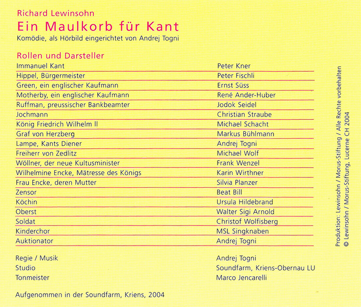 Schauspiel in elf Bildern von MORUS als Hörbild eingerichtet von Andrej Togni.