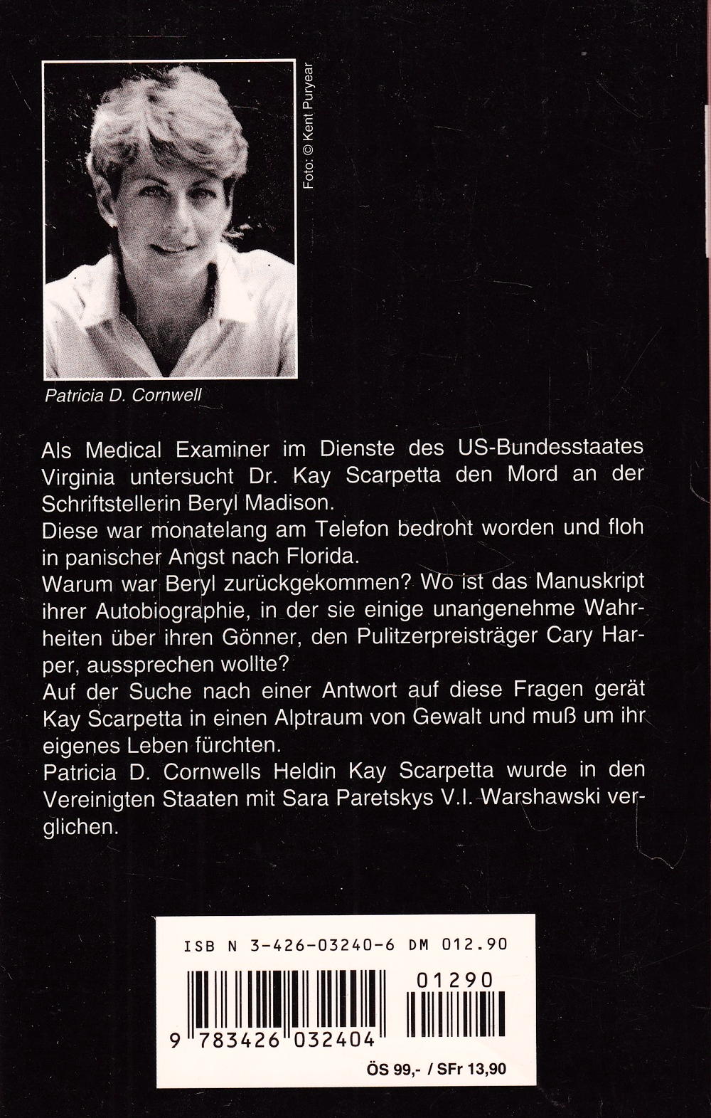 Auf der Suche nach einer Antwort auf diese Fragen gerät Kay Scarpetta in einen Alptraum von Gewalt und muss um ihr eigenes Leben fürchten. Patricia D. Cornwells Heldin Kay Scarpetta wurde in den Vereinigten Staaten mit Sara Paretskys V. I. Warshawski verglichen.