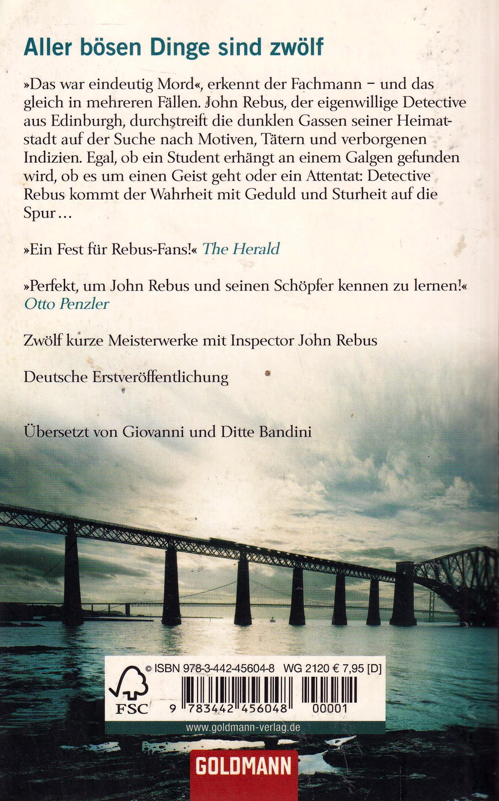 Das war eindeutig Mord , erkennt der Fachmann und das gleich in mehreren Fällen. John Rebus, der eigenwillige Detective aus Edinburgh, durchstreift die dunklen Gassen seiner Heimstadt auf der Suche nach Motiven, Tätern und verborgenen Indizien. Egal, ob ein Student erhängt an einem Galgen gefunden wird, ob es um einen Geist geht oder ein vermeintliches Attentat: Detecive Rebus kommt der Wahrheit mit Geduld und Sturheit auf die Spur