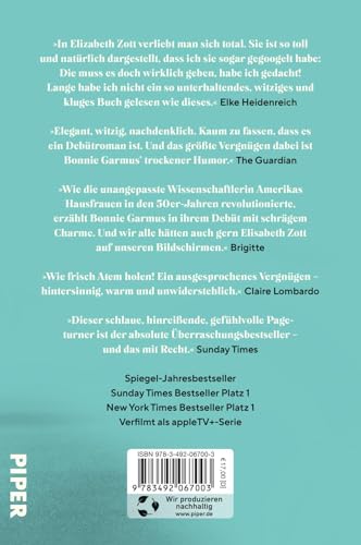 »Eine Frage der Chemie« stürmte weltweit die Bestsellerlisten und begeisterte Leser:innen und Kritiker:innen gleichermassen. Bonnie Garmus’ Schlüssel zum Erfolg für ihr hinreissend erzähltes, ja vielleicht sogar weises Buch lässt sich in zwei Worten zusammenfassen: Elizabeth Zott. So heisst ihre Heldin, die allen Widerständen ihrer Zeit zum Trotz Chemikerin werden will. Sprühend vor Originalität und Sprachwitz gelingt es Bonnie Garmus, unseren Verstand und unser Herz zu erobern – und das nicht zuletzt mit einem Hund namens Halbsieben, der den Roman mit grosser, heiterer Lebensklugheit erfüllt.
