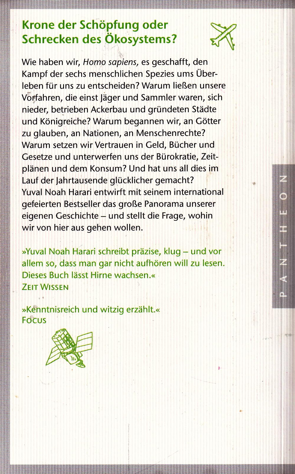Wie haben wir, Homo Sapiens, es geschafft, den Kampf der sechs menschlichen Spezies ums Überleben für uns zu entscheiden? Warum liessen unsere Vorfahren, die einst Jäger und Sammler waren, sich nieder, betrieben Ackerbau und gründeten Städte und Königreiche? Warum begannen wir, an Götter zu glauben, an Nationen, an Menschenrechte? Warum setzen wir Vertrauen in Geld, Bücher und Gesetze und unterwerfen uns der Bürokratie, Zeitplänen und dem Konsum? Und hat uns all dies im Lauf der Jahrtausende glücklicher gemacht?