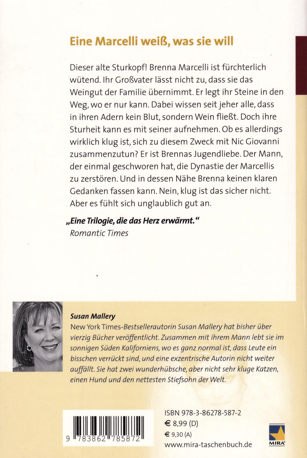 Dieser alte Sturkopf! Brenna Marcelli ist fürchterlich wütend. Ihr Grossvater lässt nicht zu, dass sie das Weingut der Familie übernimmt. Er legt ihr Steine in den Weg, wo er nur kann. Dabei wissen seit jeher alle, dass in ihren Adern kein Blut, sondern Wein fliesst. Doch ihre Sturheit kann es mit seiner aufnehmen. Ob es allerdings wirklich klug ist, sich zu diesem Zweck mit Nic Giovanni zusammenzutun? Er ist Brennas Jugendliebe. Der Mann, der einmal geschworen hat, die Dynastie der Marcellis zu zerstören. Und in dessen Nähe Brenna keinen klaren Gedanken fassen kann. Nein, klug ist das sicher nicht. Aber es fühlt sich unglaublich gut an.