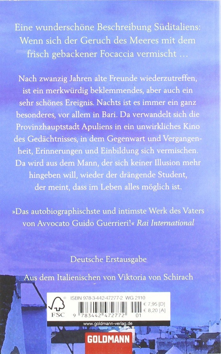 Nach zwanzig Jahren alte Freunde wiederzutreffen, ist ein merkwürdig beklemmendes, aber auch ein sehr schönes Ereignis. Nachts ist es immer ein ganz besonderes, vor allem in Bari. Da verwandelt sich die Provinzhauptstadt Apuliens in ein unwirkliches Kino des Gedächtnisses, in dem Gegenwart und Vergangenheit, Erinnerungen und Einbildung sich vermischen - und aus dem Mann, der sich keiner Illusion mehr hingeben will, wird wieder der drängende Student, der meint, dass im Leben alles möglich ist.