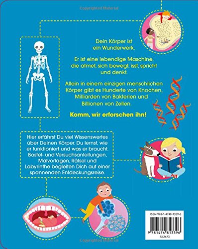 Dein Körper ist eine lebendige Maschine, die atmet, sich bewegt, isst, spricht und denkt. Allein in einem einzigen menschlichen Körper gibt es Hunderte von Knochen, Milliarden von Bakterien und Billionen von Zellen. Komm, wir erforschen ihn! Hier erfährst Du viel Wissenswertes über Deinen Körper. Du lernst, wie er funktioniert und was er braucht. Bastel- und Versuchsanleitungen, Malvorlagen, Rätsel und Labyrinthe begleiten Dich auf einer spannenden Entdeckungsreise. Für kleine Forscher ab 6 Jahren.