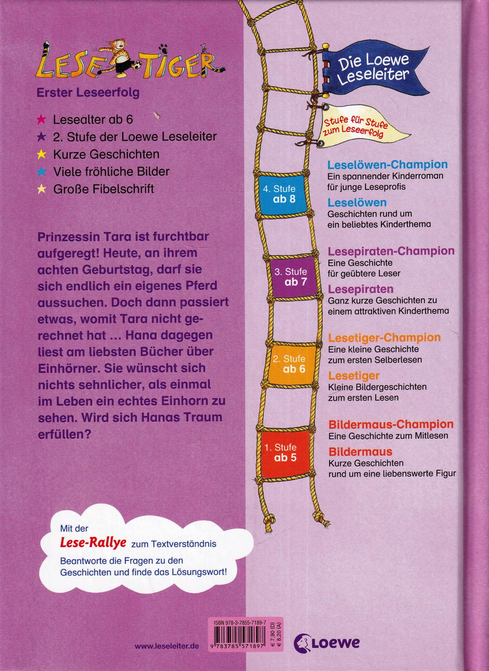 Prinzessin Tara ist furchtbar aufgeregt! Heute, an ihrem achten Geburtstag, darf sie sich endlich ein eigenes Pferd aussuchen. Doch dann passiert etwas, womit Tara nicht gerechnet hat Hana dagegen liest am liebsten Bücher über Einhörner. Sie wünscht sich nichts sehnlicher, als einmal im Leben ein echtes Einhorn zu sehen. Wird sich Hanas Traum erfüllen?