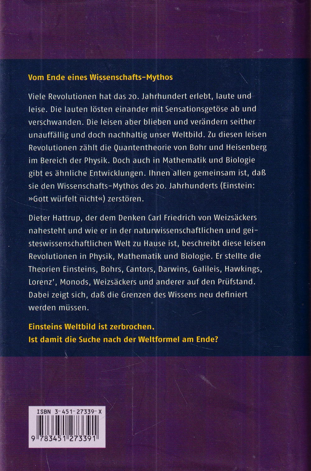 Der Autor stellt die Theorien Einstein, Bohrs, Cantors, Darwins, Hawkings, Lorenz', Monods, Weizsäckers auf den Prüfstand der Geschichte und zeigt: Nicht alle Wirklichkeit ist Natur. Einsteins Weltbild ist zerbrochen, es hat nur kaum jemand bemerkt.