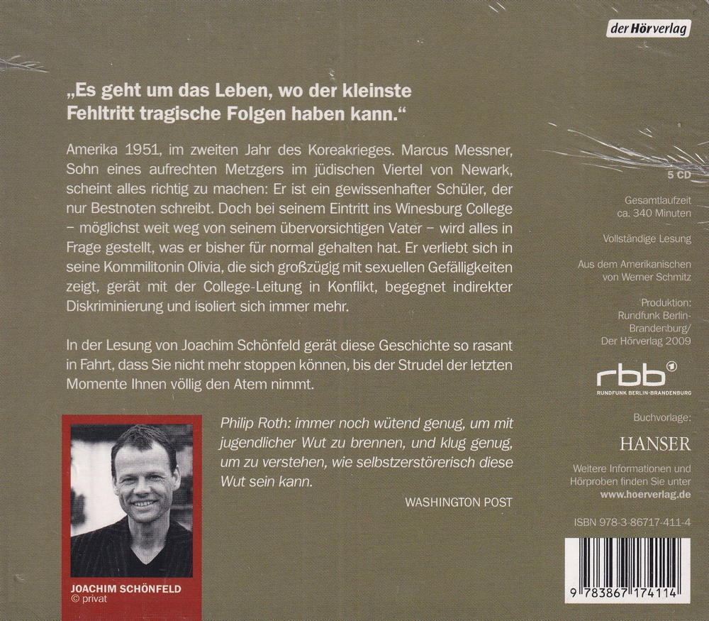 Amerika 1951, im zweiten Jahr des Koreakrieges. Marcus Messner, Sohn eines aufrechten Metzgers im jüdischen Viertel von Newark, scheint alles richtig zu machen: Er ist ein gewissenhafter Schüler, der nur Bestnoten schreibt. Doch bei seinem Eintritt ins Winesburg College - möglichst weit weg von seinem übervorsichtigen Vater - wird alles in Frage gestellt, was er bisher für normal gehalten hat. Er verliebt sich in seine Kommilitonin Olivia, die sich grosszügig mit sexuellen Gefälligkeiten zeigt, gerät mit der College-Leitung in Konflikt, begegnet indirekter Diskriminierung und isoliert sich immer mehr.