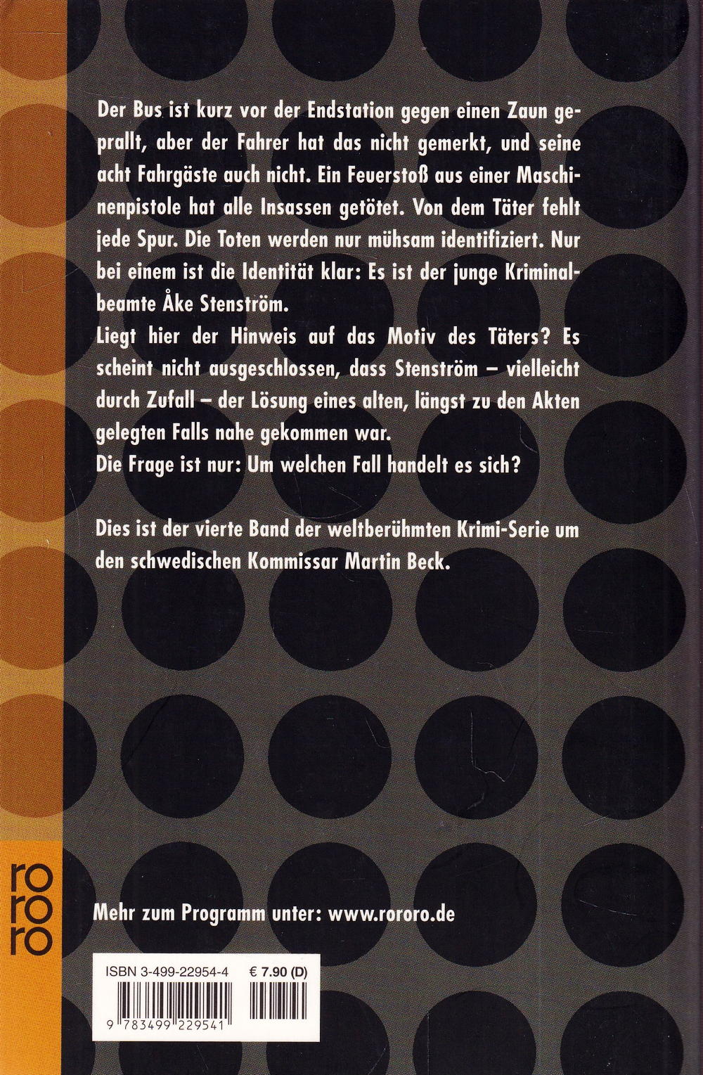 Der Bus ist kurz vor der Endstation gegen einen Zaun geprallt, aber der Fahrer hat das nicht gemerkt, und seine acht Fahrgäste auch nicht. Ein Feuerstoss aus einer Maschinenpistole hat alle Insassen getötet. Von dem Täter fehlt jede Spur. Die Toten werden nur mühsam identifiziert. Nur bei einem ist die Identität klar: Es ist der junge Kriminalbeamte Ake Stenström. Liegt hier der Hinweis auf das Motiv des Täters? Es scheint nicht ausgeschlossen, dass Stenström - vielleicht durch Zufall - der Lösung eines alten, längst zu den Akten gelegten Falls nahe gekommen war. Die Frage ist nur: Um welchen Fall handelt es sich?