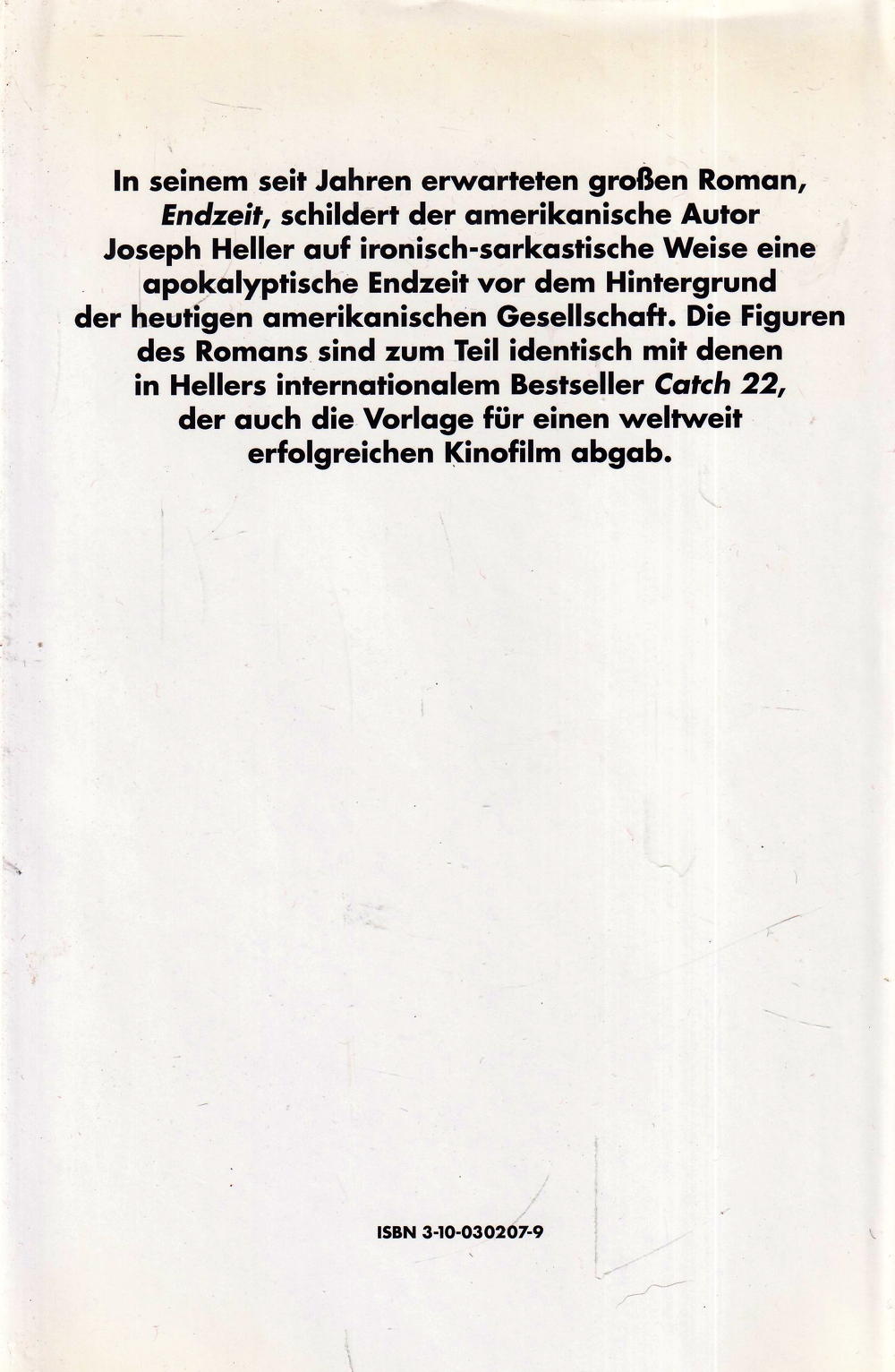 In seinem seit Jahren erwarteten grossen Roman, Endzeit, schildert der amerikanische Autor Joseph Heller auf ironisch-sarkastische Weise eine apokalyptische Endzeit vor dem Hintergrund der heutigen amerikanischen Gesellschaft. Die Figuren des Romans sind zum Teil identisch mit denen in Hellers internationalem Bestseller Catch 22, der auch die Vorlage für einen weltweit erfolgreichen Kinofilm abgab.