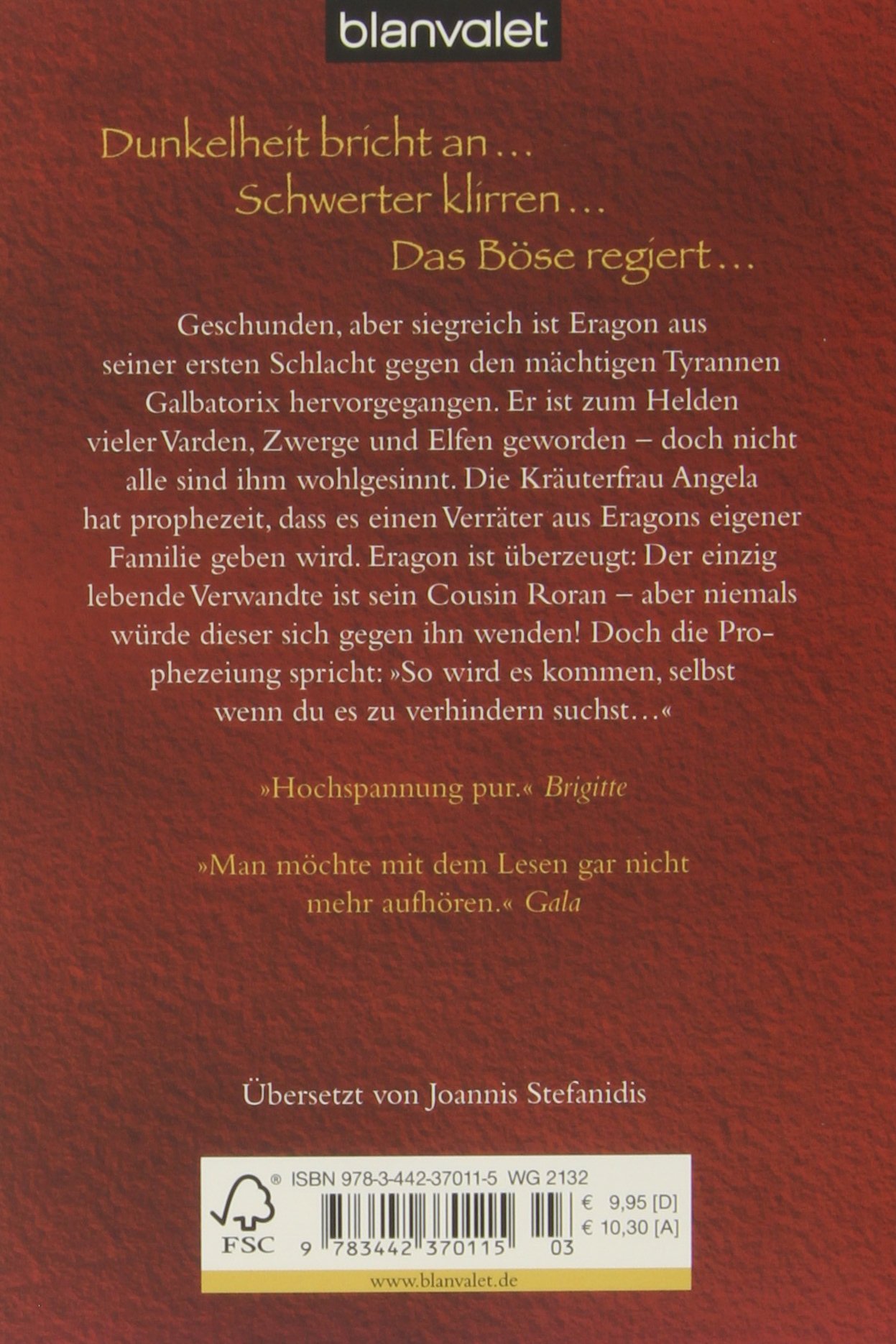 Geschunden, aber siegreich ist Eragon aus seiner ersten Schlacht gegen den mächtigen Tyrannen Galbatorix hervorgegangen. Er ist zum Helden vieler Elfen, Zwerge und Varden geworden, doch nicht alle sind ihm wohlgesinnt. Die Kräuterfrau Angela hat einen Verräter prophezeit, der aus Eragons eigener Familie stammen soll. Eragon ist sich sicher: Der einzig lebende Verwandte ist sein Cousin Roran - aber niemals würde dieser sich gegen ihn wenden! Doch die Prophezeiung spricht: "So wird es kommen, selbst wenn du es zu verhindern suchst."
