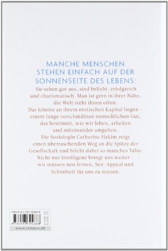 David Beckham hat es, Anne Will auch – und Carla Bruni erst recht: Die Rede ist von erotischem Kapital. Die Soziologin Catherine Hakim zeigt einen überraschenden Weg an die Spitze der Gesellschaft und bricht dabei so manches Tabu: Nicht nur Intelligenz bringt uns weiter – wir müssen neu lernen, Sex-Appeal und Schönheit für uns zu nutzen. Feministische Scheuklappen haben Frauen jahrzehntelang nicht weitergebracht, im Gegenteil: Wer hierzulande zu gut aussieht, dem wird von vornherein der IQ gekürzt. Bewusst eingesetzte Attraktivität gilt als anstössig, dabei spielt das gewisse Etwas für den sozialen Aufstieg eine ebenso grosse Rolle wie die Ausbildung. Und das Beste ist: Jeder kann es entwickeln und erlernen!