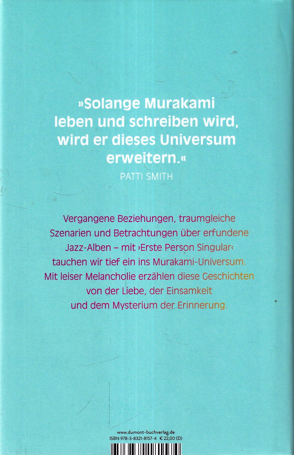 Frauen, die verschwinden, eine fiktive Bossa-Nova-Platte von Charlie Parker, ein sprechender Affe und ein Mann, der sich fragt, wie er wurde, was er ist: Die Rätsel um die Menschen, Dinge, Wesen und Momente, die uns für immer prägen, beschäftigen die Ich-Erzähler der acht Geschichten in 'Erste Person Singular'. Es sind klassische Murakami-Erzähler, die uns in eine Welt aus nostalgischen Jugenderinnerungen, vergangenen Liebschaften, philosophischen Betrachtungen, Literatur, Musik und Baseball entführen. Melancholisch, bestechend intelligent und tragikomisch im allerbesten Wortsinn sind diese Geschichten, die wie beiläufig mit der Grenze zwischen Fiktion und Realität spielen und immer wieder den Verdacht nahelegen, dass Autor und Ich-Erzähler mehr als nur ein paar Gemeinsamkeiten haben.
