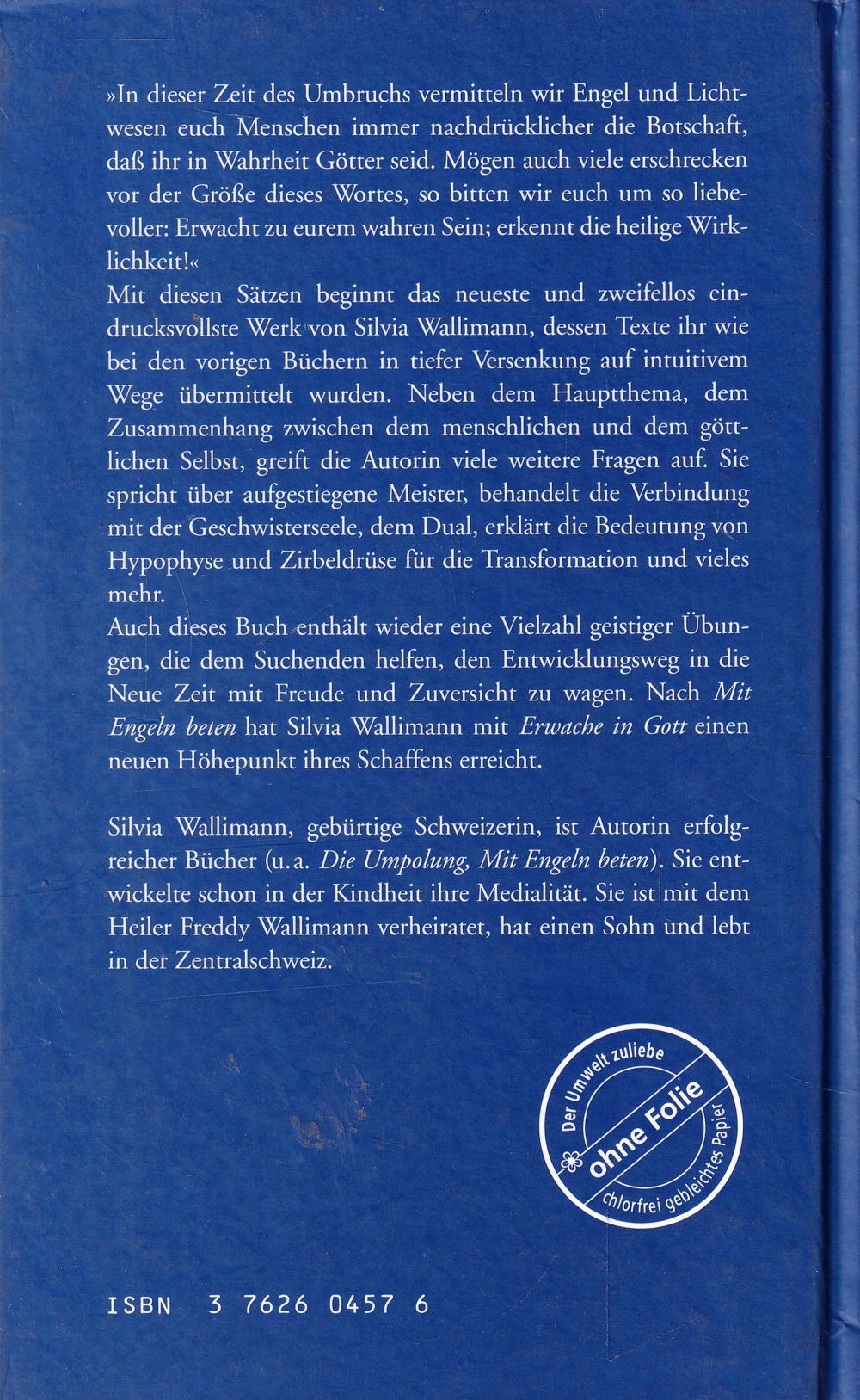 Auch dieses Buch enthält wieder eine Vielzahl geistiger Übungen, die dem Suchenden helfen, den Entwicklungsweg in die Neue Zeit mit Freude und Zuversicht zu wagen. Nach Mit Engeln beten hat Silvia Wallimann mit Erwache in Gott einen neuen Höhepunkt ihres Schaffens erreicht.