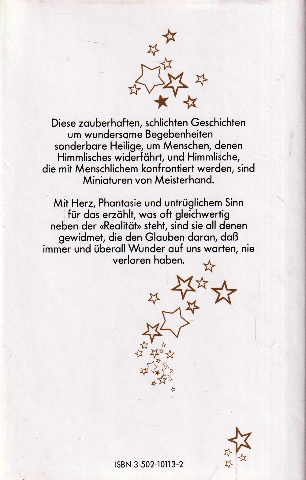Diese zauberhaften, schlichten Geschichten um wundersame Begebenheiten sonderbare Heilige, um Menschen, denen Himmlisches widerfährt, und Himmlische, die mit Menschlichem konfrontiert werden, sind Miniaturen von Meisterhand.