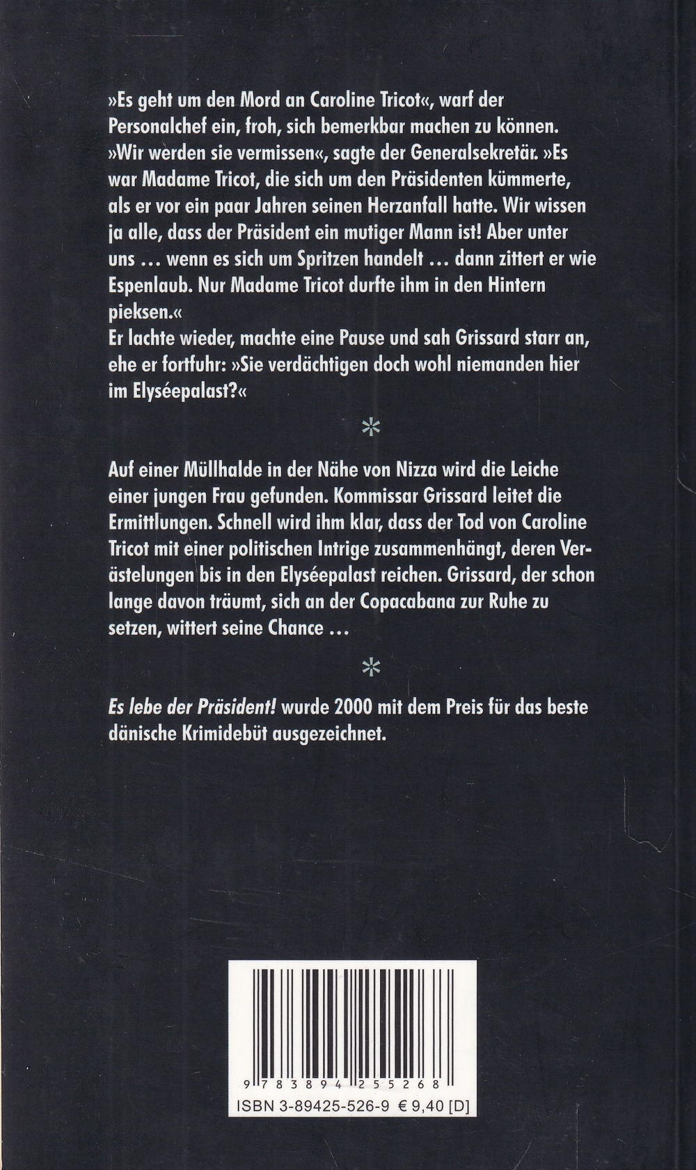 Es lebe der Präsident! wurde 2000 mit dem Preis für das beste dänische Krimidebüt ausgezeichnet.